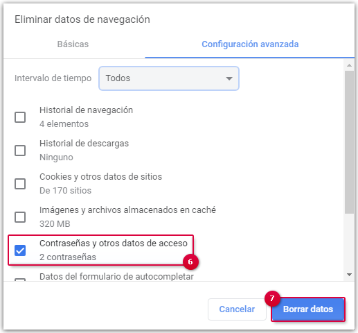 Chrome: eliminar contraseñas guardadas